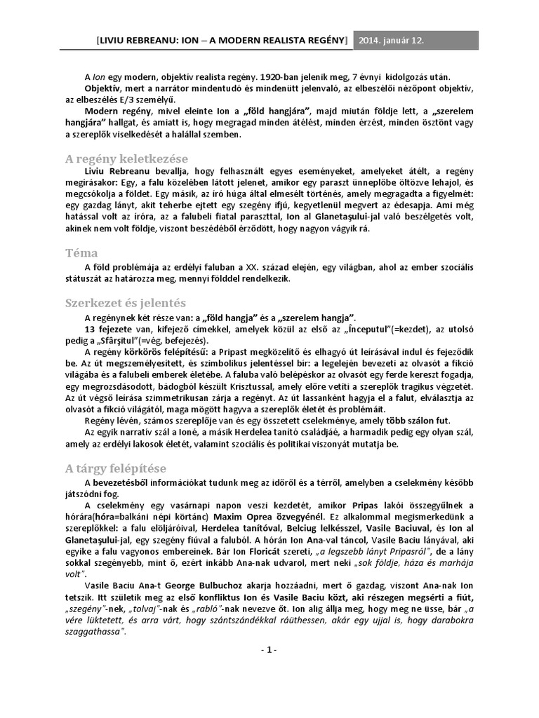 Liviu Rebreanu Ion A Modern Realista Regeny Magyar Tartalom