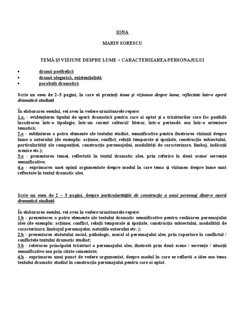 Iona De Marin Sorescu Eseu Structurat