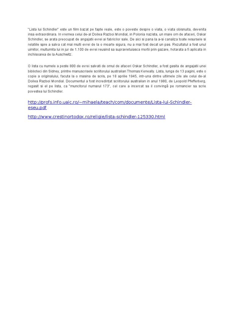 Lista Lui Schindler Pdf