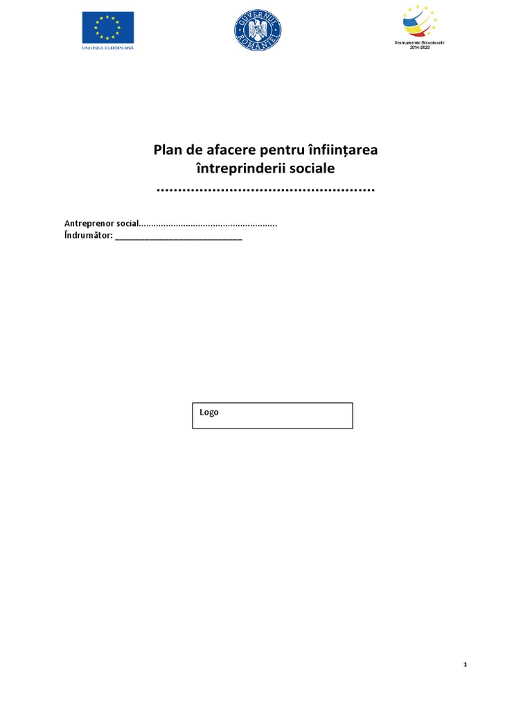 Model Plan De Afaceri Intreprindere Sociala