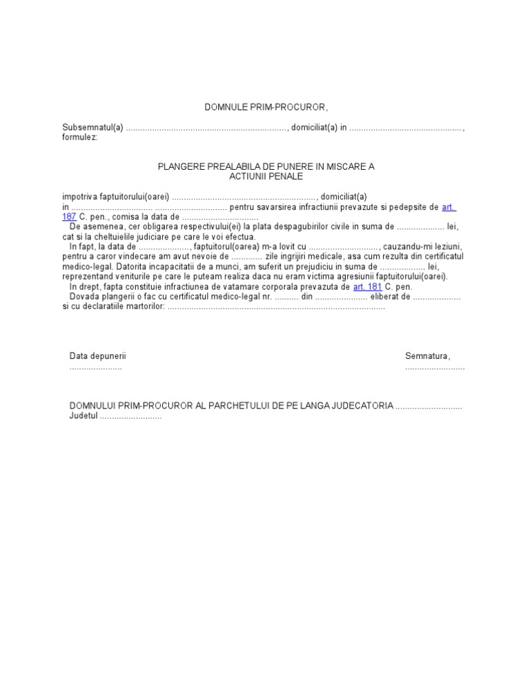 Plangere Prealabila Adresata Organului De Urmarire Penala